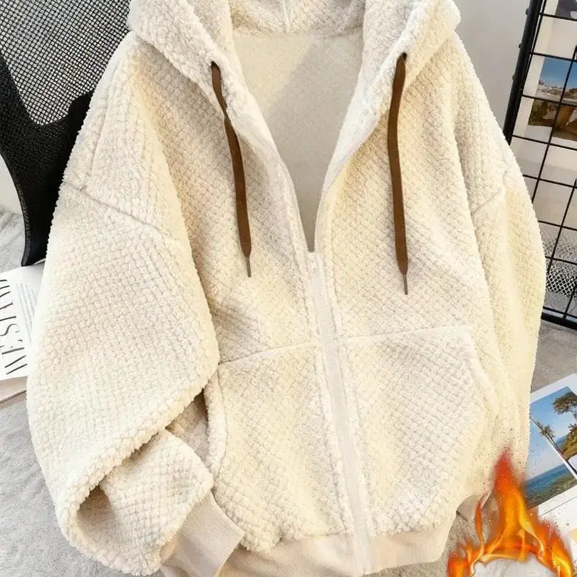 여성용 캐주얼 플리스 후디드 집업 스웨트 셔츠, 가을 겨울용