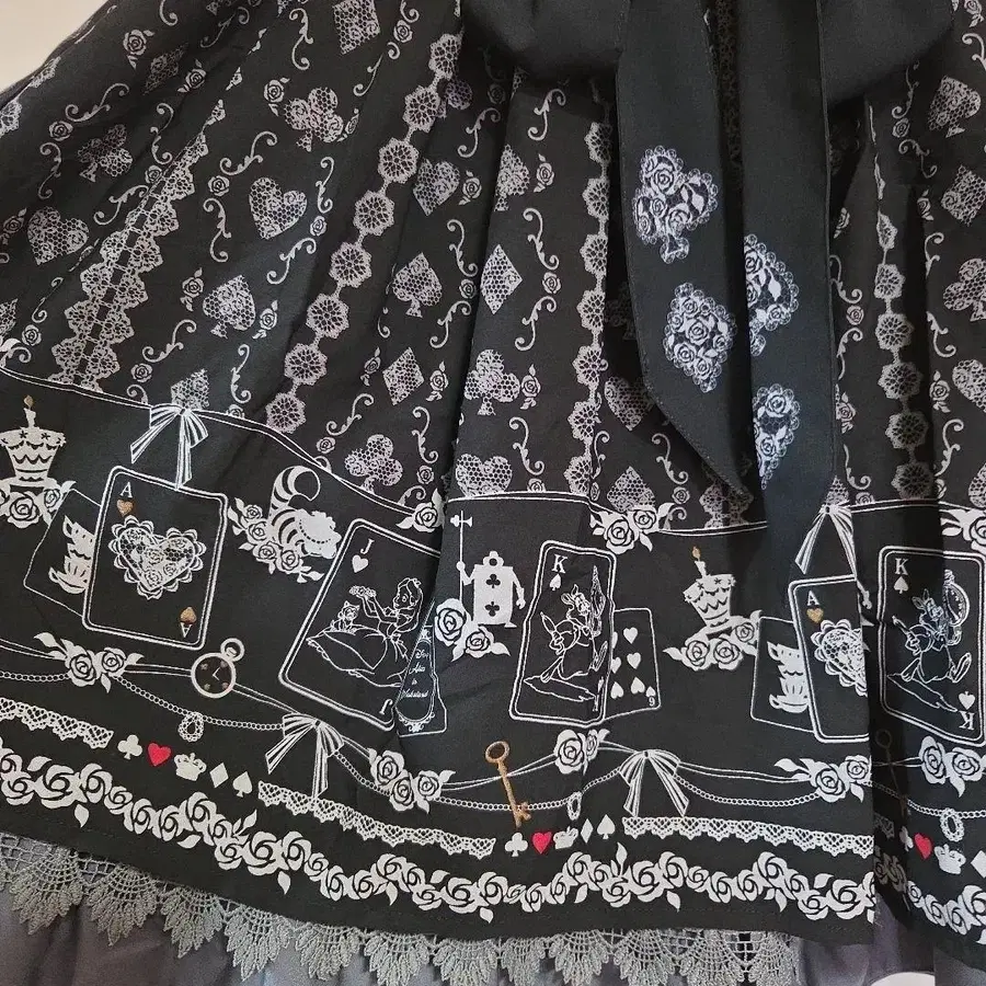 axes femme 카드놀이 메르헨 패턴 스커트 블랙
