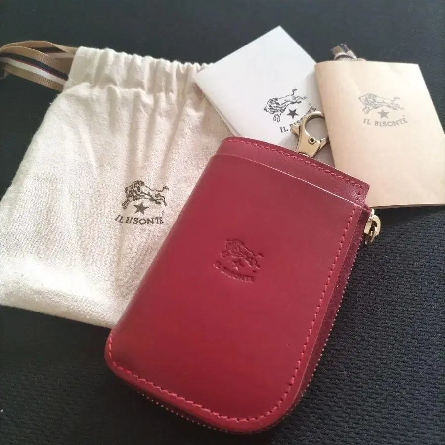 새상품 일비종떼 천연 가죽 키케이스 스마트 키링 레드 로쏘
