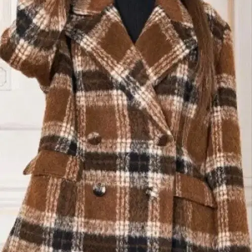브라운 계열 체크 더블 브레스트 코트