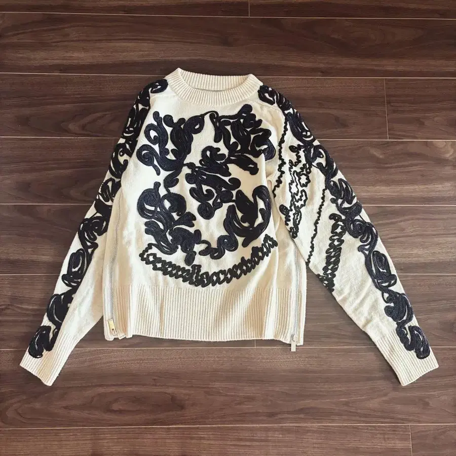 sacai 캘리그래피 자수 니트 상의 지퍼 사카이 지퍼