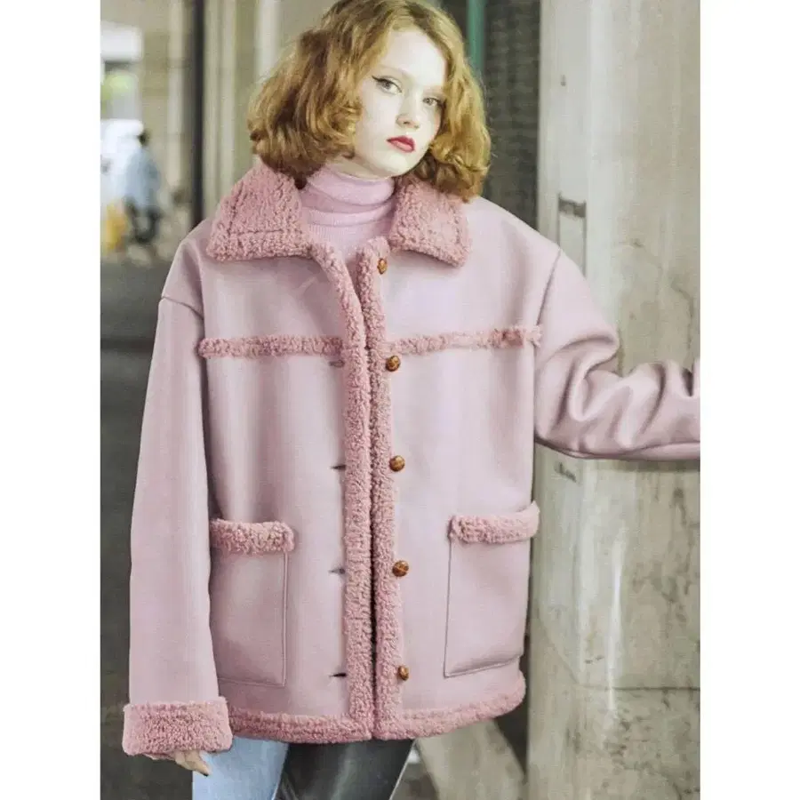 핑크 인조 모피 무스탕 코트 택 포함 새상품