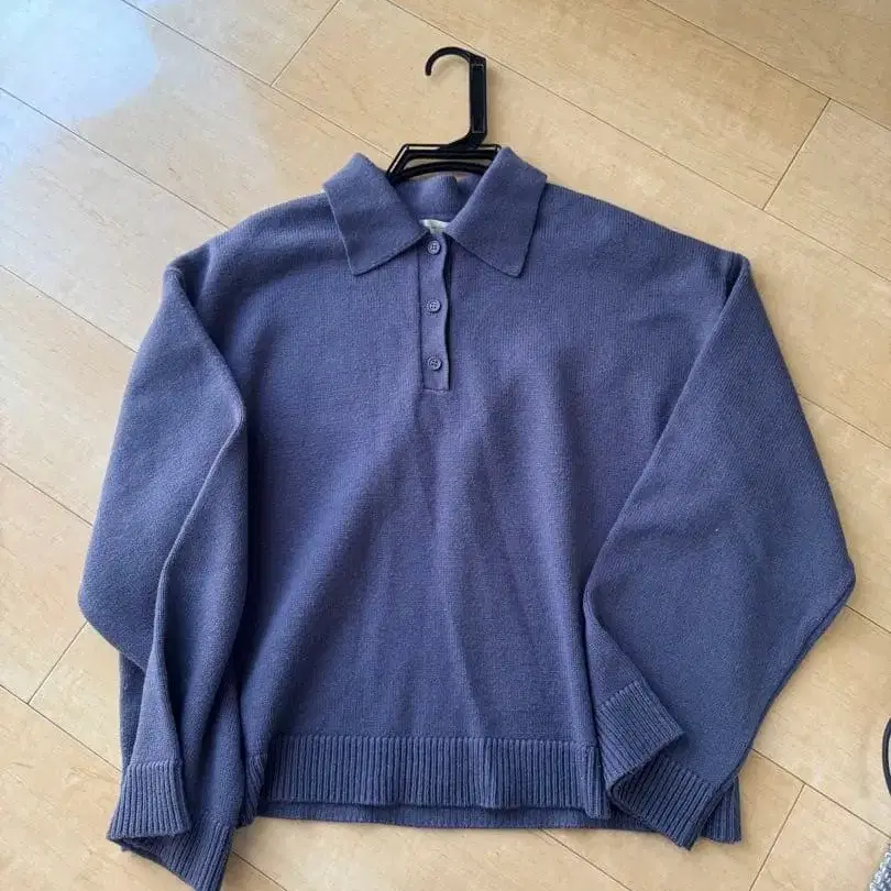 네이비 블루 폴로 셔츠 스타일 니트 긴팔