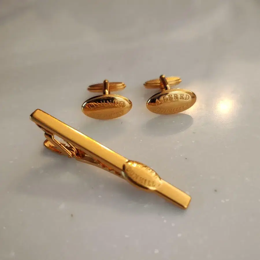 dunhill 골드 넥타이핀과 커프스링크 세트