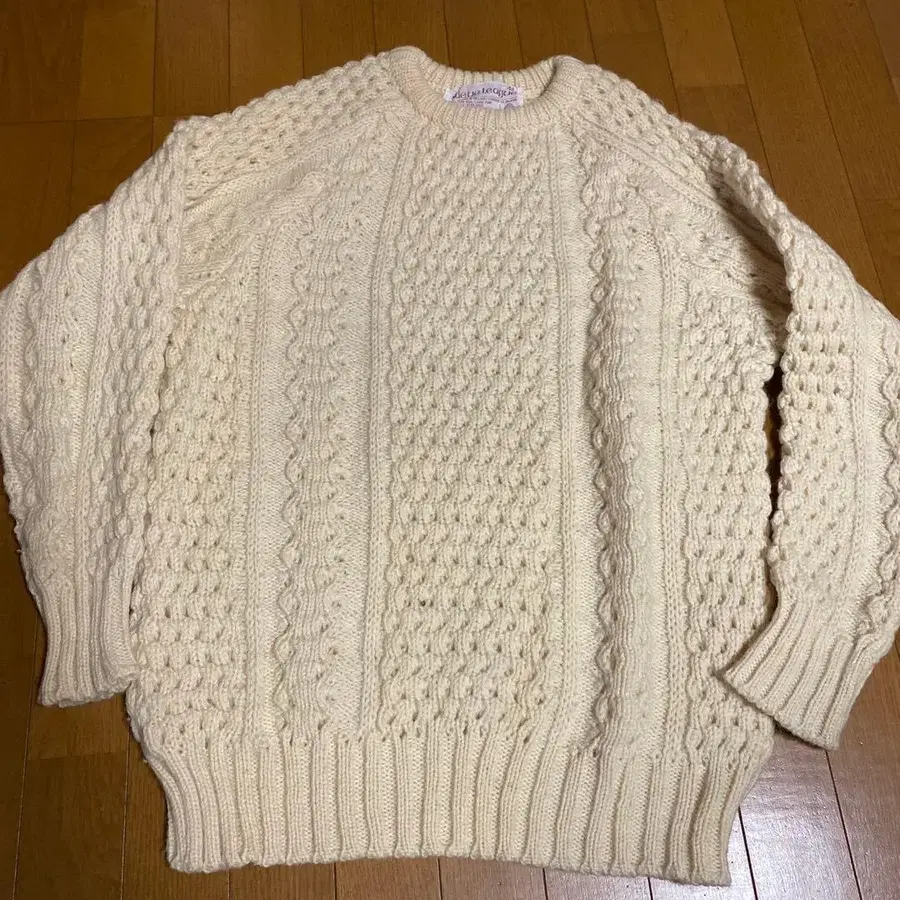 빈티지 아일랜드제 울 피셔맨 아란 니트 손뜨개질