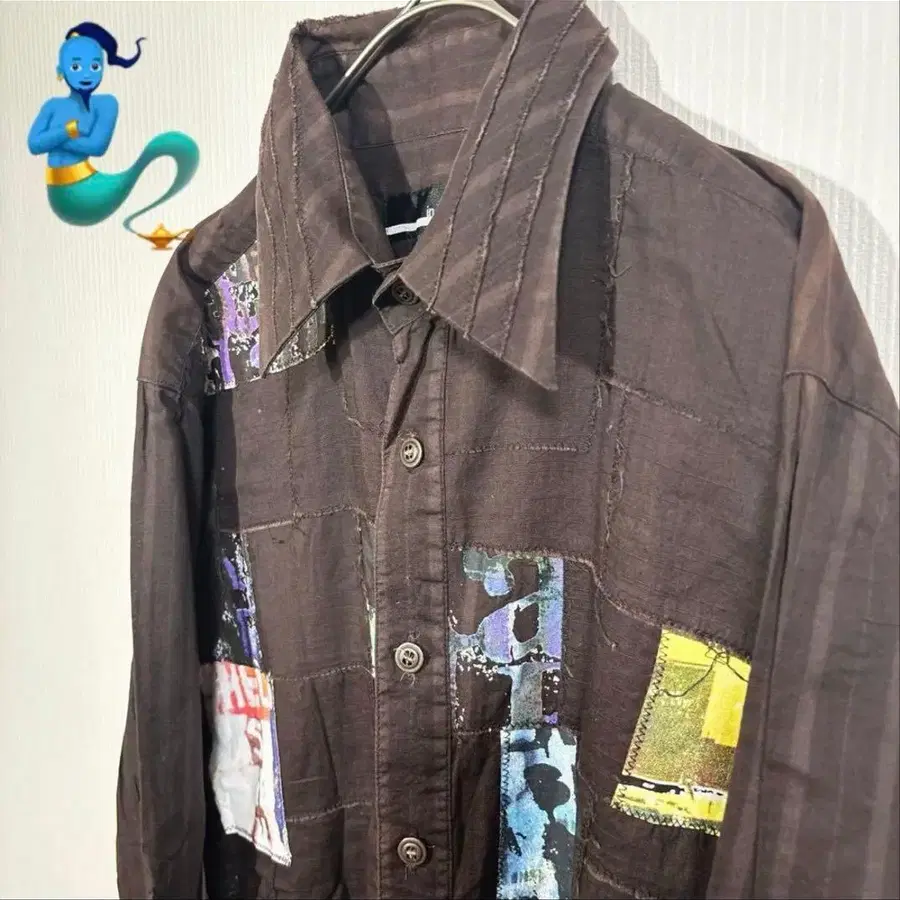 자동 번역되었어요. 원문보기다크 브라운의 패치워크 스타일 긴팔 셔츠.
