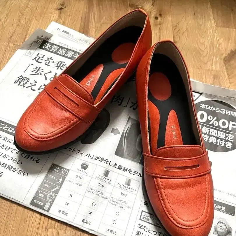 오렌지 가죽 로퍼 힐