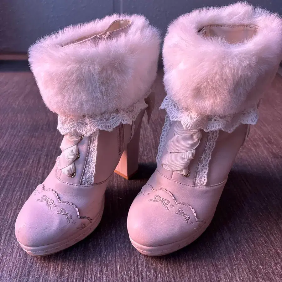 퍼 달린 리본 디자인 화이트 부츠 23.5