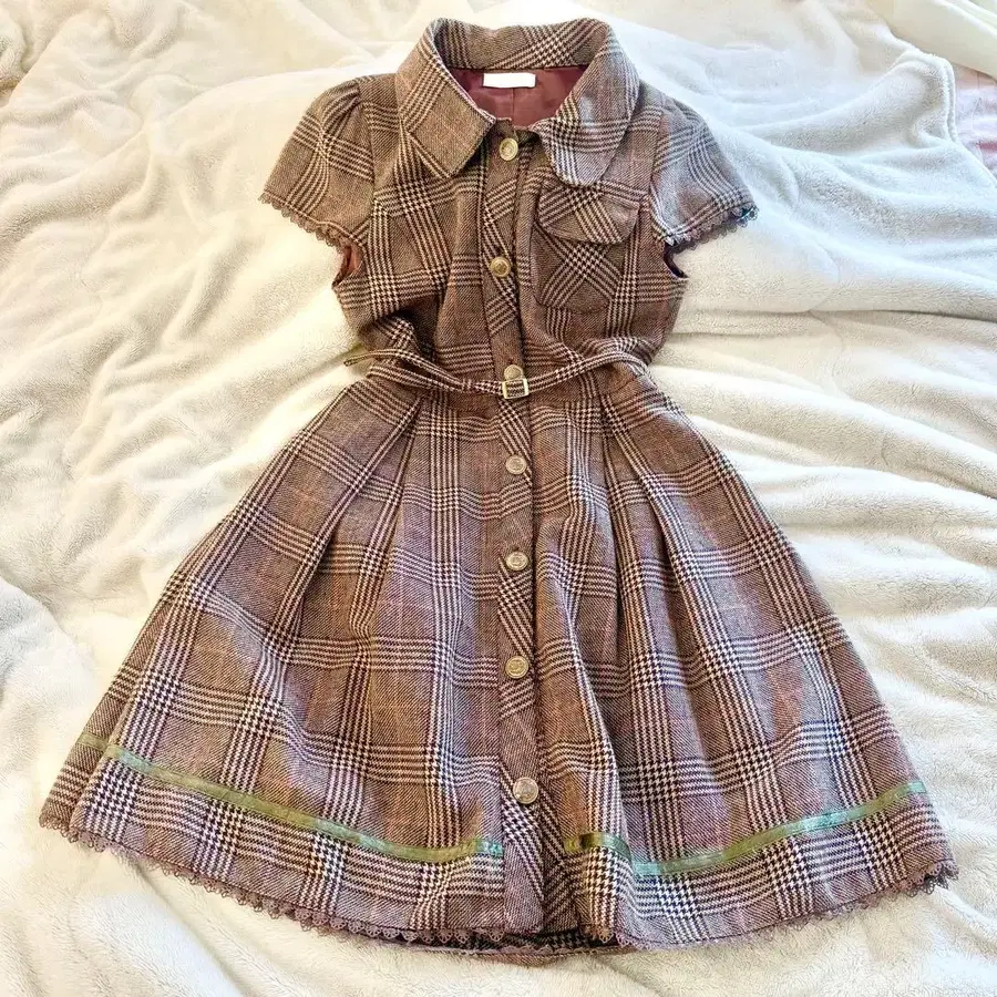 LIZ LISA 체크 무늬 반팔 무릎 기장 원피스