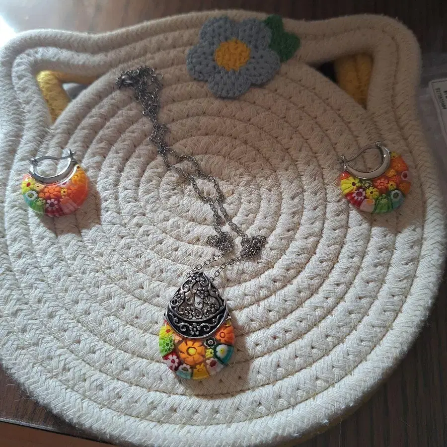 보헤미안풍 유리제 목걸이와 귀걸이 세트