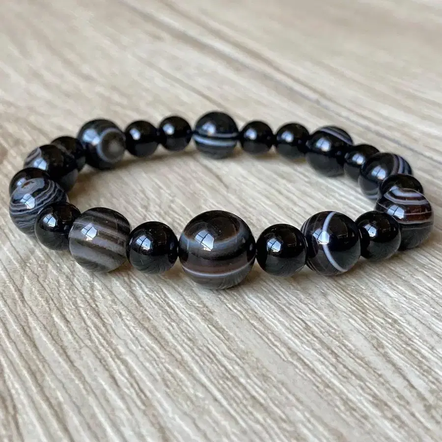 최강의 액막이라고 불리는 모리온에 하늘의 눈을 가진 돌이라고 불리는 아이아게이트를 조합하여 파워스톤 팔찌로 완성했습니다. 이보다 더 좋을 수 없는 부적으로 착용해 보시는 건 어떨까요? 아이아게이트는 [하늘의 눈을 가진 돌]로서, 달라이 라마가 착용하는 것으로도 유명한 파워스톤입니다. 그 '눈'의 파워로 마이너스 기운이나 악령, 사악한 것을 가까이 오지 못하게 하는 파워가 있다고 합니다. 많은 사람이 모이는 장소 등에 외출할 때 아이아게이트를 착용하면, 네거티브한 에너지로부터 분명 당신을 지켜줄 것입니다. 그 이름처럼, 눈과 같은 무늬가 있기 때문에 진실을 꿰뚫어 보는 파워를 가진 돌이라고도 합니다. 아이아게이트 액막이 교통안전 및 위험을 동반하는 업무의 부적 어려운 상황을 타개함 네거티브한 에너지로부터 몸을 보호함 의지를 강하게 갖고 목표를 향해 나아감 마이너스 사고방식을 떨쳐냄 모리온 검은색 수정 중에서도 강한 빛을 비춰도 투명해지지 않는 것을 [모리온(블랙 크리스탈)]이라고 하며, 빛을 통하는 수정은 스모키 쿼츠입니다. 팔찌뿐만 아니라 방에 두는 액막이로서도 최근 매우 인기 있는 돌입니다. 모리온은 모든 나쁜 기운을 되돌려 강력한 액막이 부적이 됩니다. 영혼의 안정과 평온을 가져다주며 마음 깊은 곳으로부터의 차분함을 선사합니다. 행운을 가져다주는 돌이 아니라 불행을 가까이 오지 않게 하는 효과가 있는 돌이므로 [최근 나쁜 일이 계속된다]는 사람에게 추천합니다. 발송 전 세이지로 정화 후 하얀 '기부적'으로 파워를 증폭시켜 여러분께 전달해 드립니다. (하얀 기부적은 관동 제일이라고 하는 파워스팟인 미쓰미네 신사에서 매월 1일에만 판매되는 부적입니다. 일본 전국에서 이 하얀 기부적을 구하기 위해 밤샘하여 줄을 서서 정리권을 받고, 하루 종일 걸려 겨우 손에 넣을 수 있는 귀한 부적입니다.) 현재는 구매하려는 사람들의 행렬이 몇 킬로미터나 이어져 인근 주민들에게 폐를 끼치게 되므로, 하얀 기부적의 판매는 중지되었습니다. 판매 사이즈 안쪽 둘레 약 17.5cm 모리온 약 8mm 아이아게이트(티베트 마노) 약 12mm/10mm 사이즈 변경 가능합니다. 사이즈 업의 경우 추가 요금이 발생하므로 구매 전에 메시지로 지정 사이즈를 알려주세요.