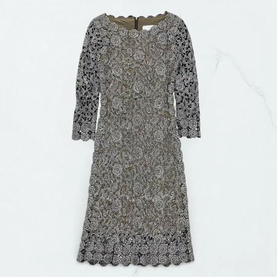 [엘르케이] 자수 레이스 미디엄 원피스 드레스 S