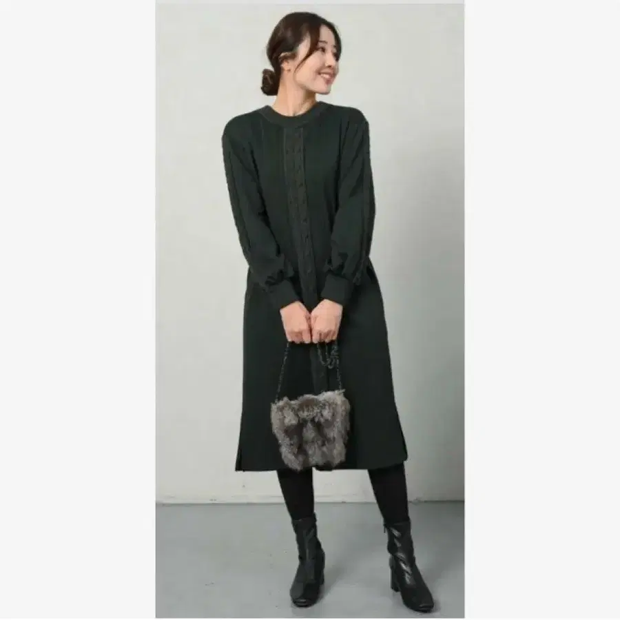 앙리크 오 블루 속기모 소프트 저지 케이블 니트 악센트 원피스