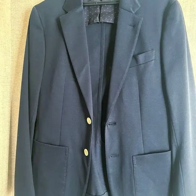 ※ 접어서 방수 대책을 하여 정성스럽게 포장하여 발송합니다. 100% 네이비 색상의 테일러드 자켓, 도트 무늬 안감이 특징입니다.