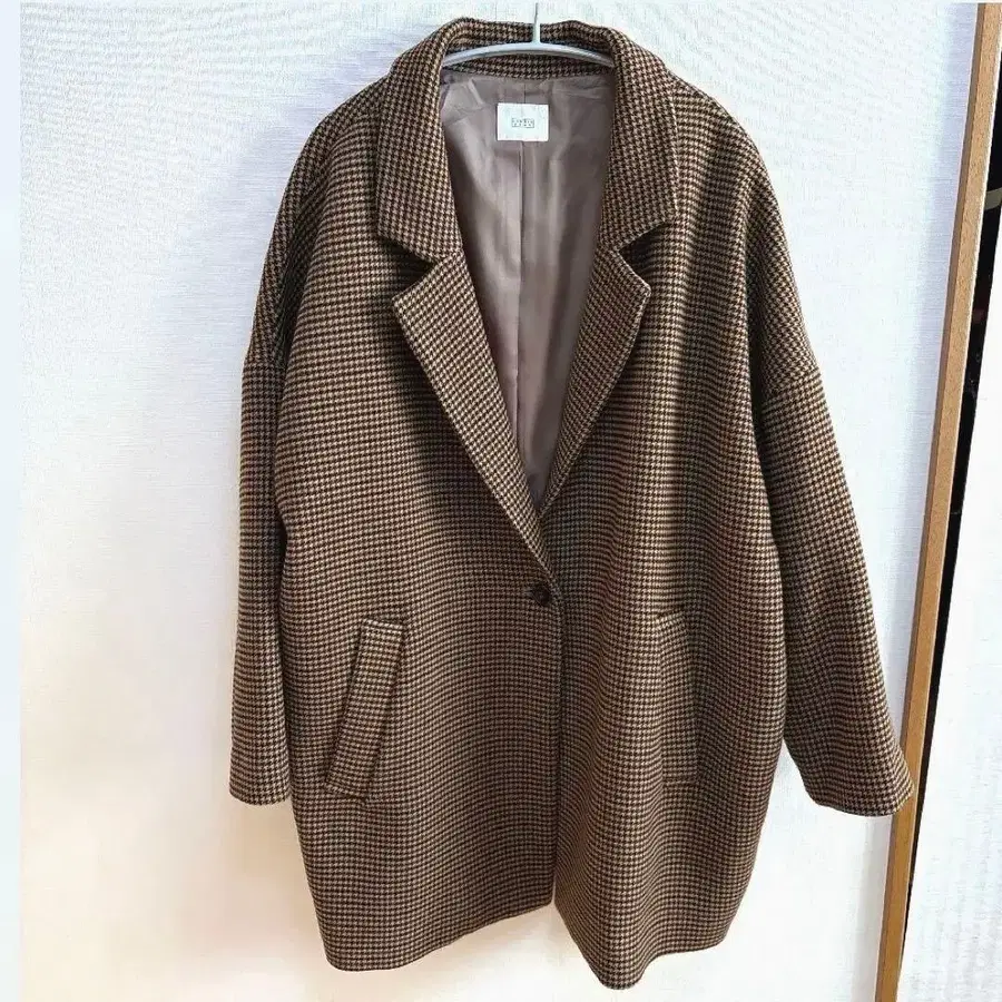 체스터 코트 체크 무늬 브라운