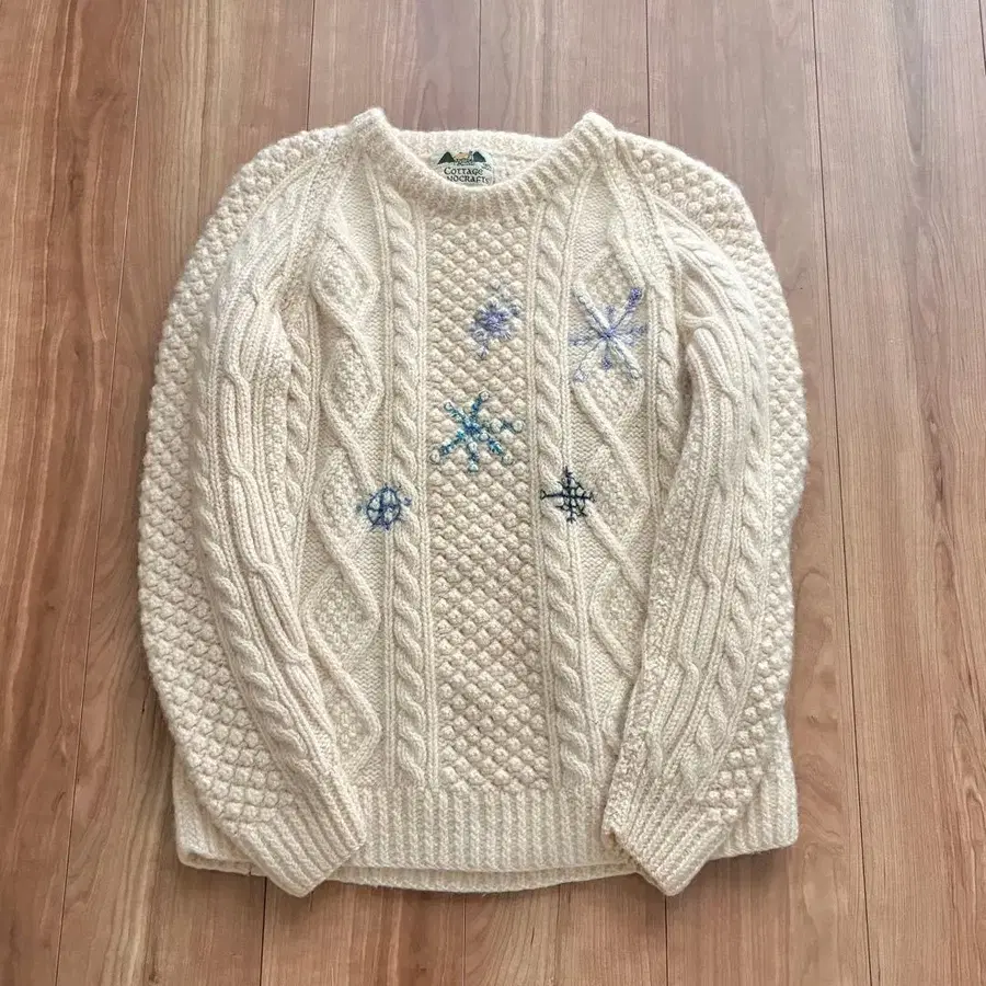 Cottage Nanocrafts 제조 화이트 컬러 100% 울 스웨터