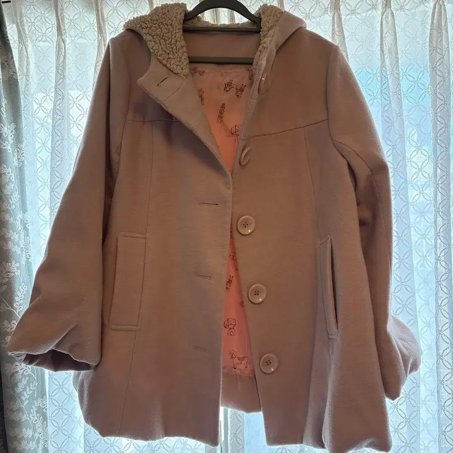 프랑슈리페 베이지 하프 코트 고양이 버튼과 안감 프린트 귀여운 빅 사이즈