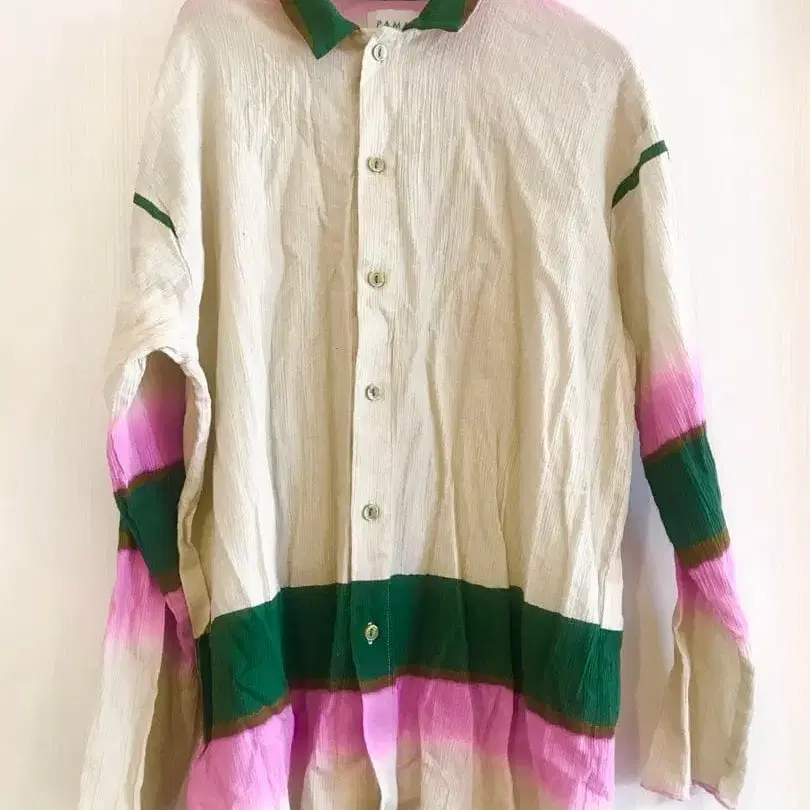 PAMM 아이보리 그린 핑크 긴팔 셔츠