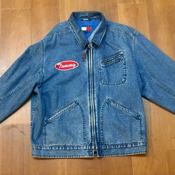 [레어 디자인] 타미힐피거 데님 자켓 옷깃 절개 와펜 L