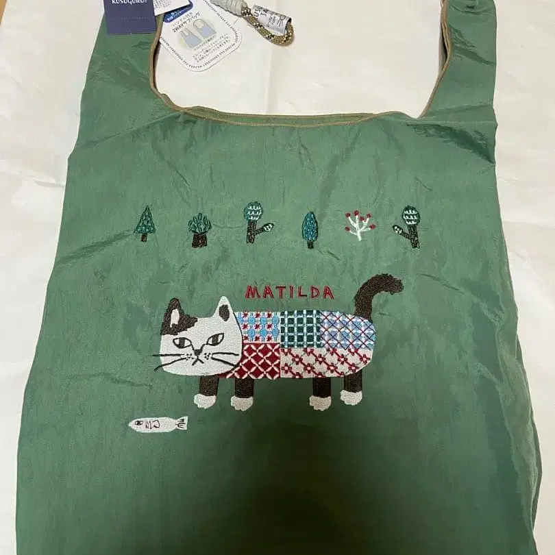 쿠스구루 재팬 마틸다 고양이 자수 백 그린