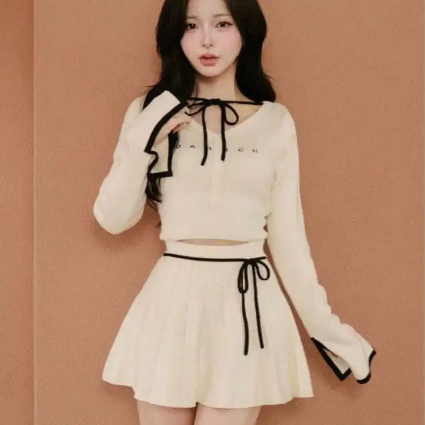 darich 허리 오픈 리본 디자인 니트 미니 원피스