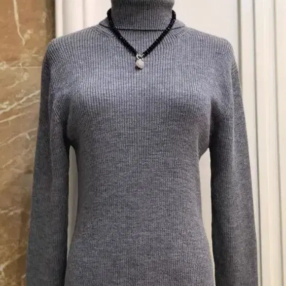 그레이 리브 편직 하이넥 긴팔