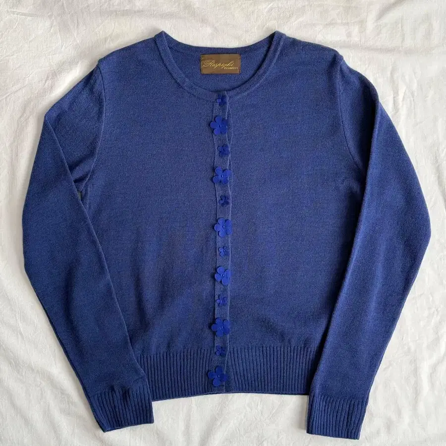 [ 미사용 새상품 ] 레스피기 플라워 버튼 가디건 블루
