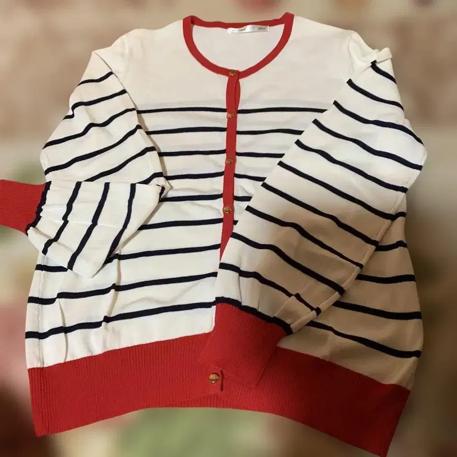 스트라이프 가디건 빨간색 리브