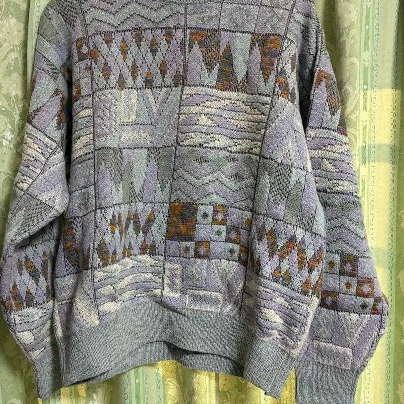 • 디자인 니트 스웨터 올 패턴 이탈리아제 기하학 패턴 레트로 빈티지 그린