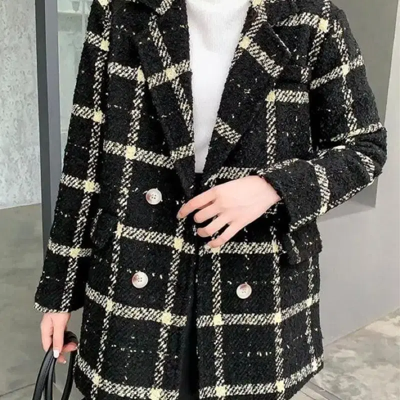 GRL NEW 체크 무늬 라메 트위드 테일러드 자켓