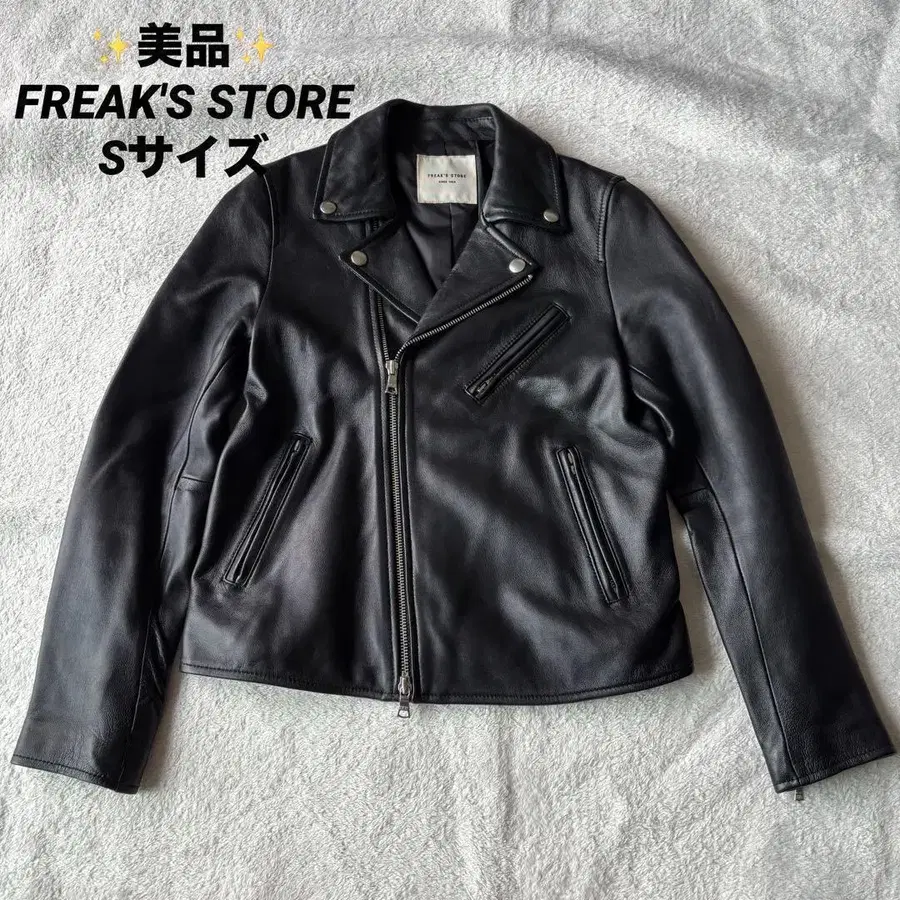 자동 번역되었어요. 원문보기FREAK'S STORE/프릭스스토어 램 가죽 더블 라이더 자켓 S 사이즈 블랙 천연 가죽 양가죽 여성용
