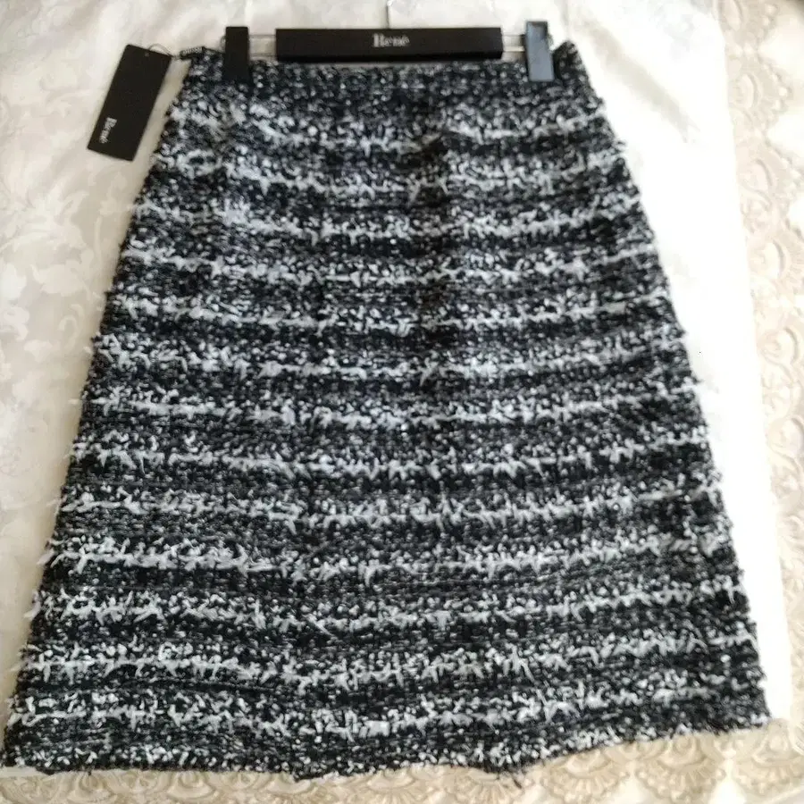 르네 블랙 앤 화이트 트위드풍 니트 스커트