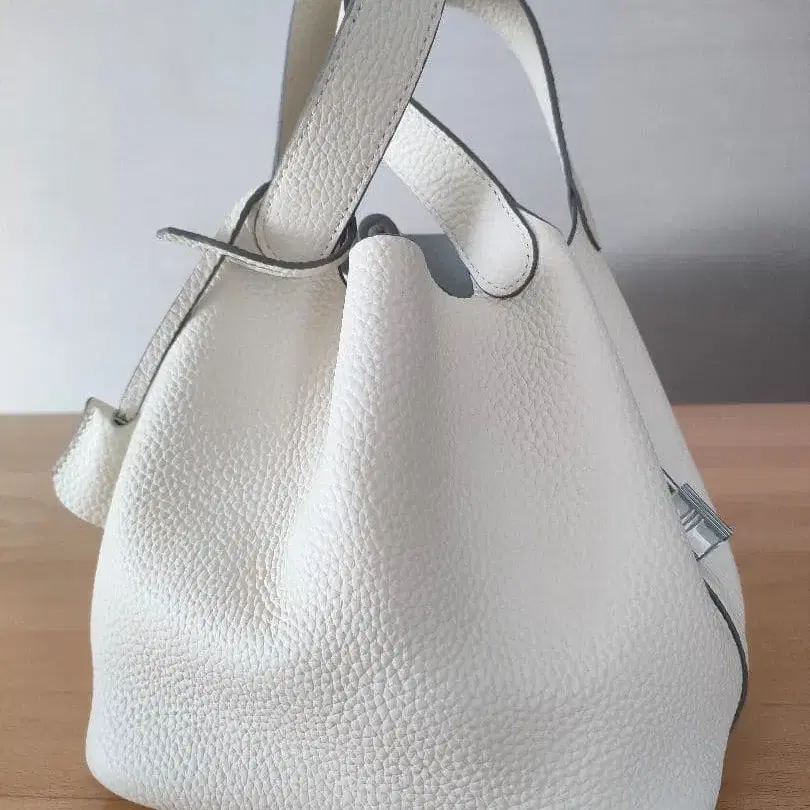 화이트 가죽 핸드백 큐브형 백