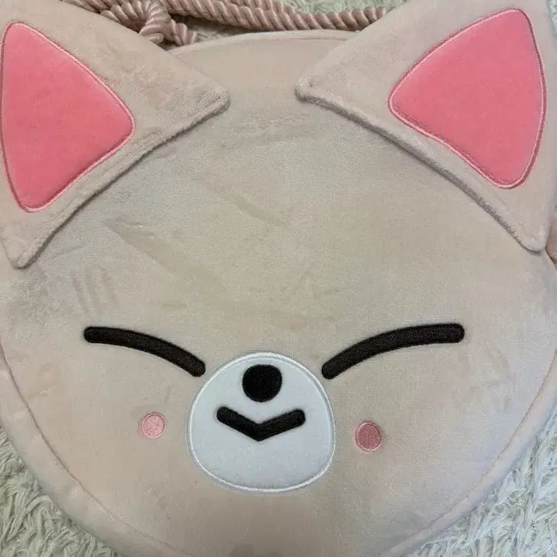 고양이 얼굴 디자인 파우치 베이지 핑크