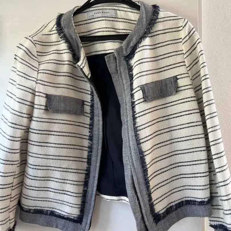 ZARA BASIC 스트라이프 노카라 자켓 36
