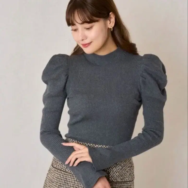 어깨부터 소매의 퍼프 슬리브에는 적당한 볼륨이 나오도록 턱을 넣었으며, 부드러운 니트 소재로 아우터에 드러나지 않고 착용하실 수 있습니다.