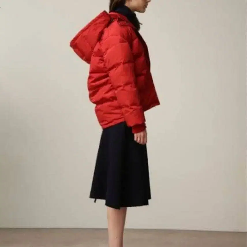 미라 오웬 후드 부착 빨간색 숏 다운 자켓