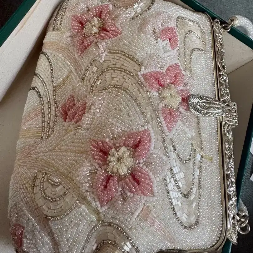 꽃무늬 비즈 자수 클러치백 박스 포함