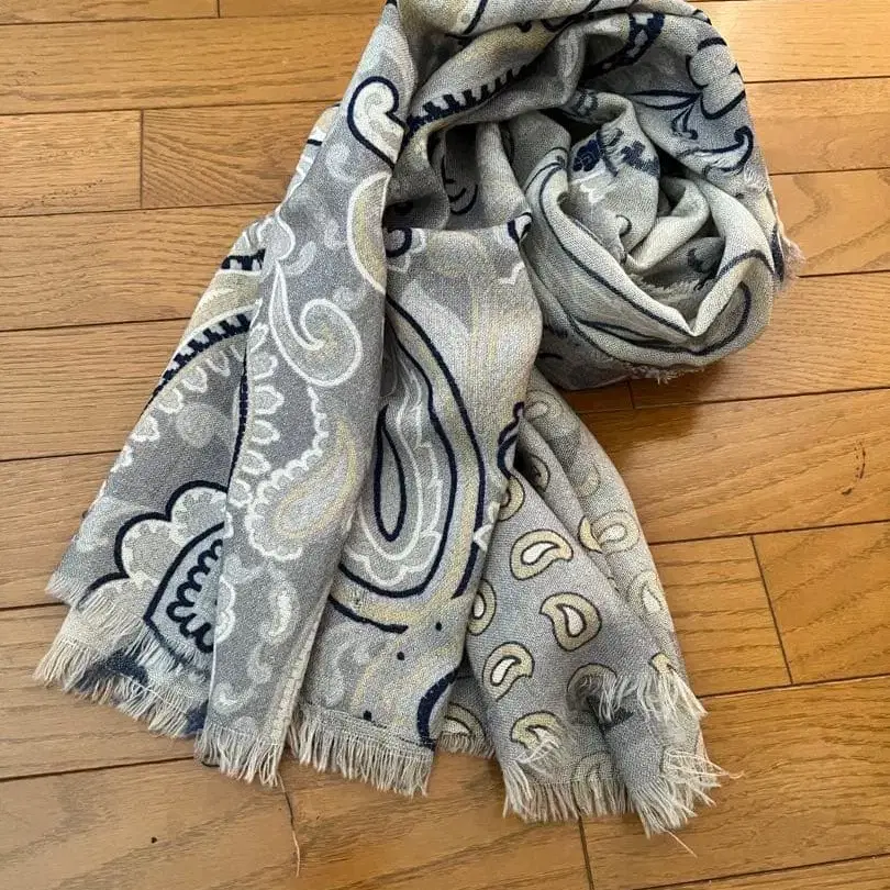 UMBERTO FORNARI 페이즐리 무늬 그레이 계열 머플러 스톨