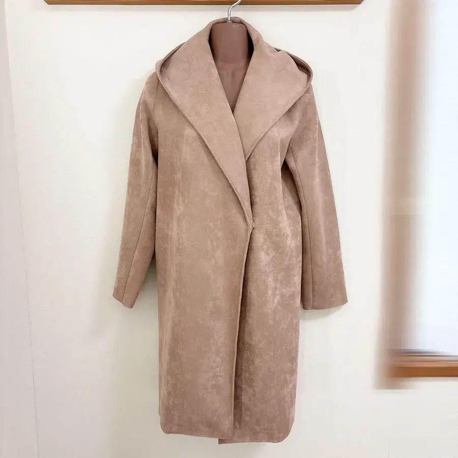 Doux archives 페이크 스웨이드 롱 후드 코트 자켓