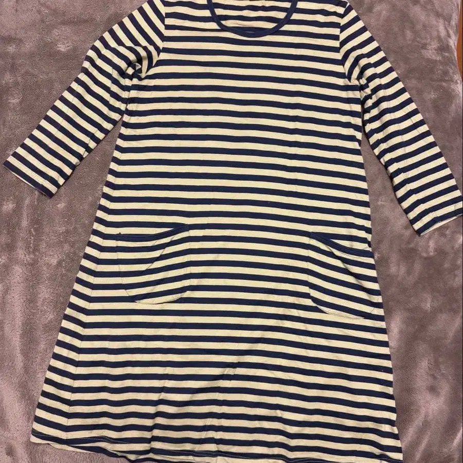 스트라이프 패턴 코튼 긴팔 원피스