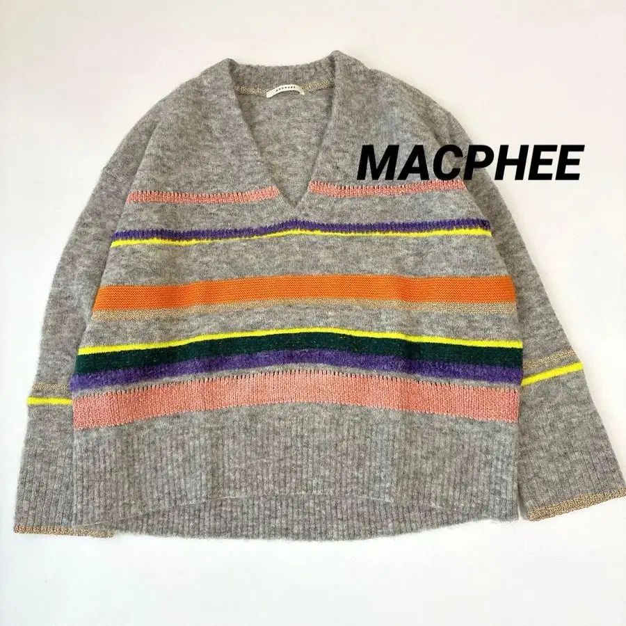 새상품급 그레이 스트라이프 긴팔 V넥 스웨터 울모헤어 MACPHEE