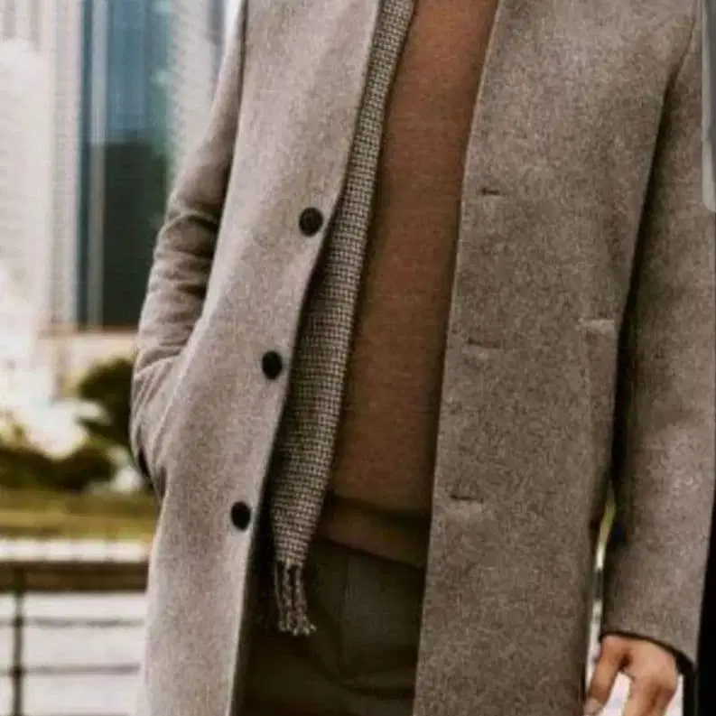 그레이 울 혼방 싱글 브레스 체스터 코트
