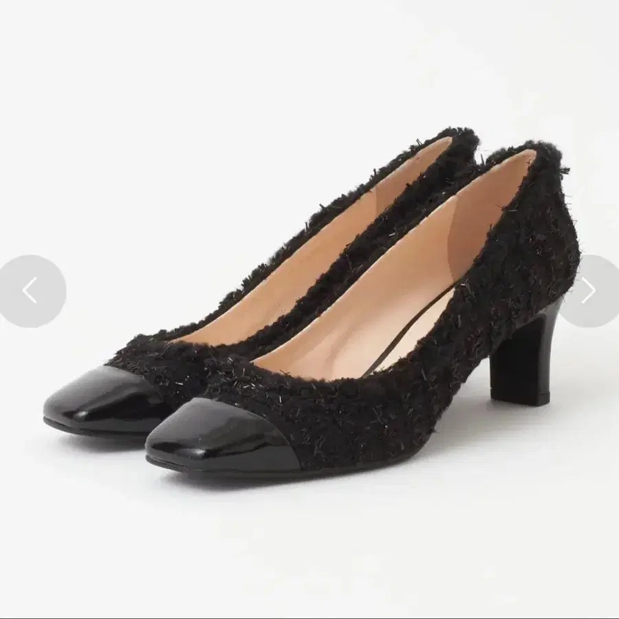 DIANA 미들힐 펌프스 트위드 에나멜 블랙