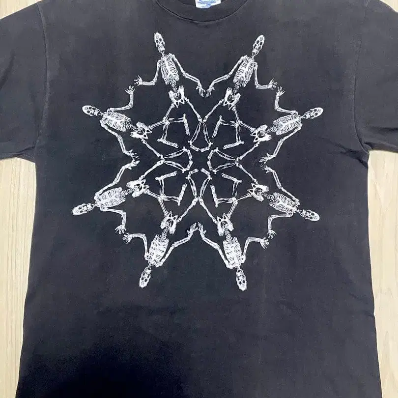 90s 스컬 스켈레톤 디자인 T셔츠 Hanes 로카빌리 밴드T
