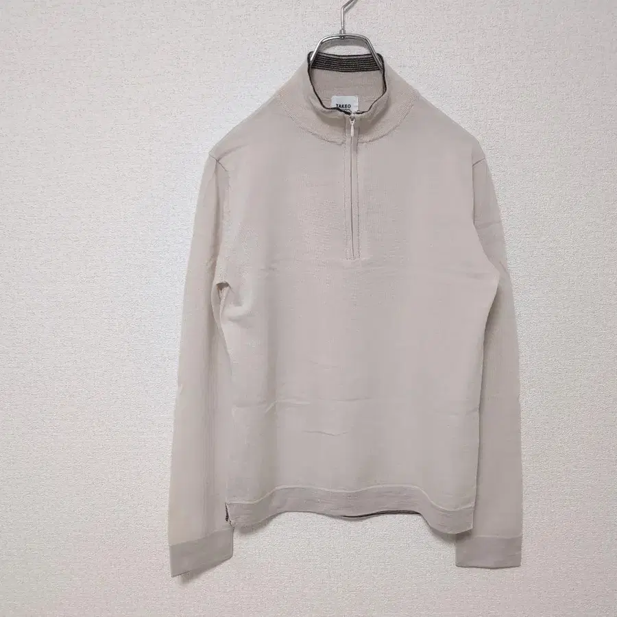 고급스러운 베이지 컬러가 인상적인, TAKEO KIKUCHI의 하프 지퍼 니트.