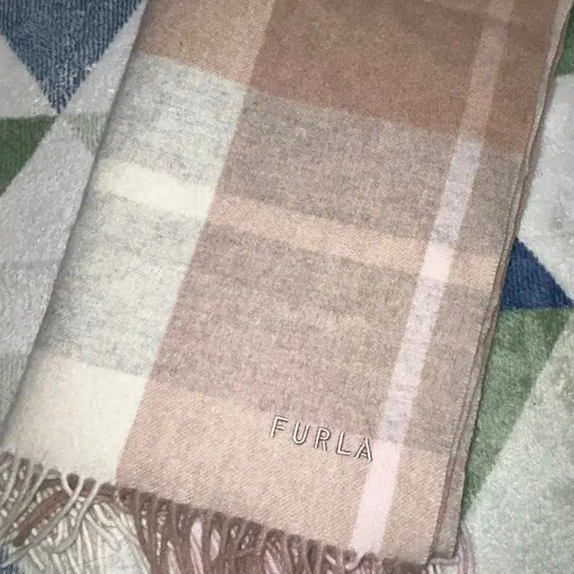 FURLA 울 스톨 블록 체크 베이지