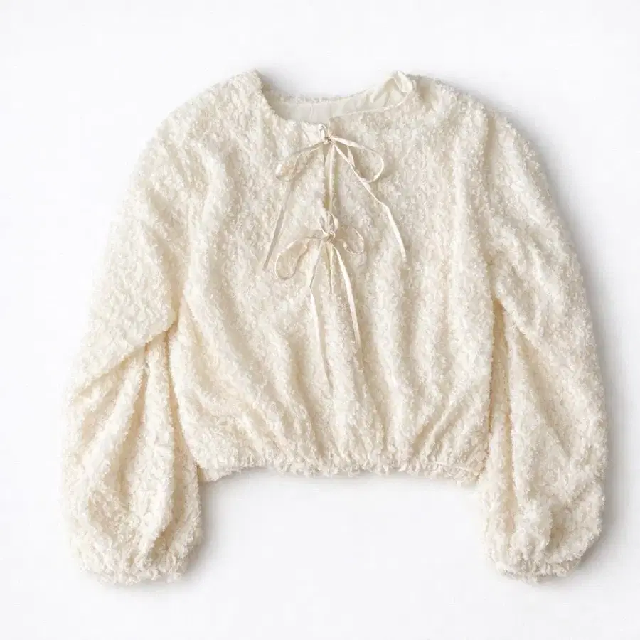 입체감 있는 플라워 패턴의 자카드 소재가 귀여운, 화이트 계열의 상의입니다.
