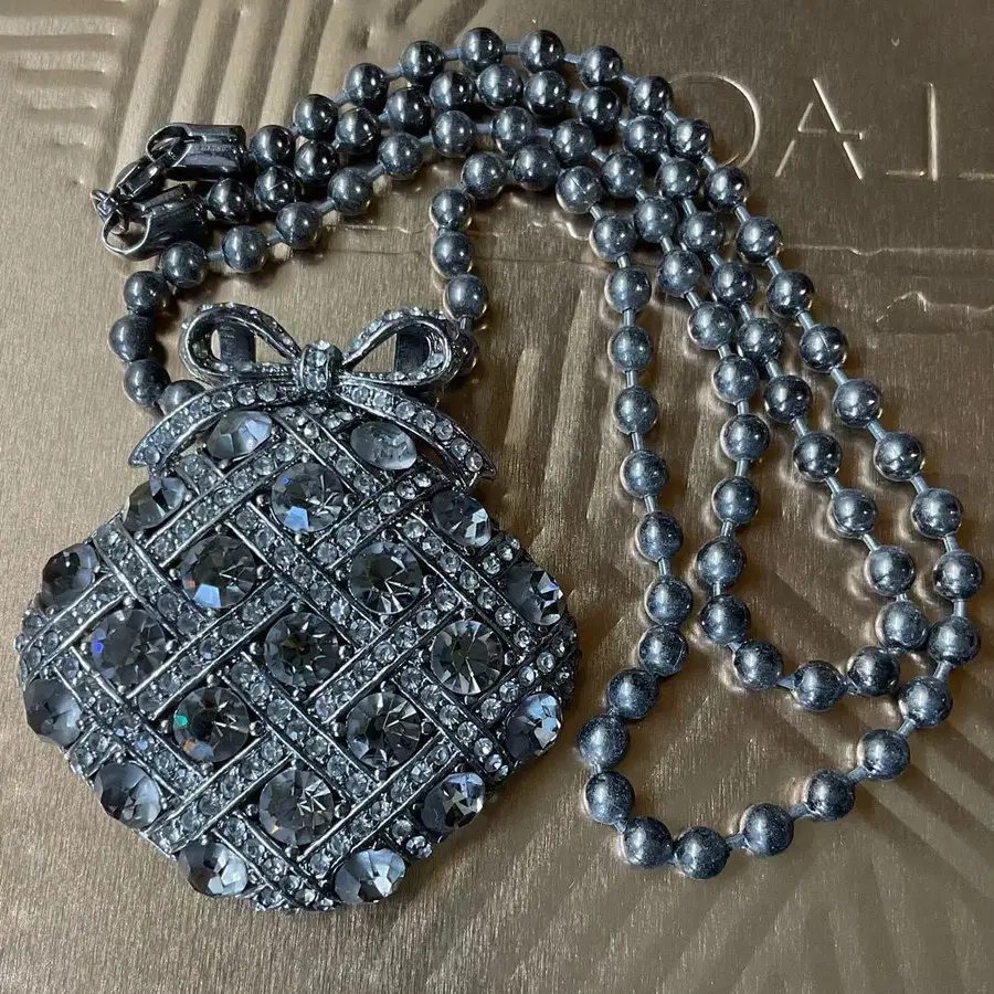 실버 볼 체인 목걸이 빅 사이즈 반짝이는 리본