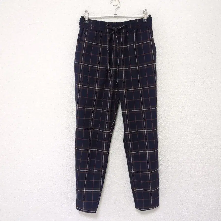 [ a.v.v ] 네이비 체크 무늬 슬림핏 팬츠 [ XS ]